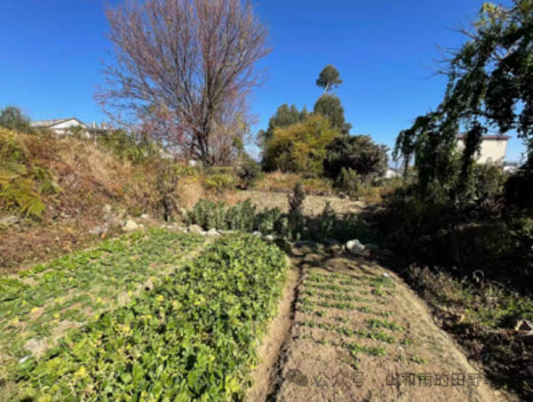 回头时,吴长老已经沿着小路旁杂乱的石阶往上走了。我们赶紧跟上。平台近处是一片村民墓地,墓碑上刻着回文;稍远处是一块块菜地,被逐渐升高的石台阶分隔开来。