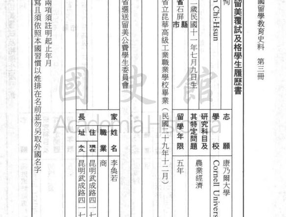 袁绩恂 家长(疑似母亲),李奐若,商人,住址云南昆明市武成路417号(已改名人民中路)