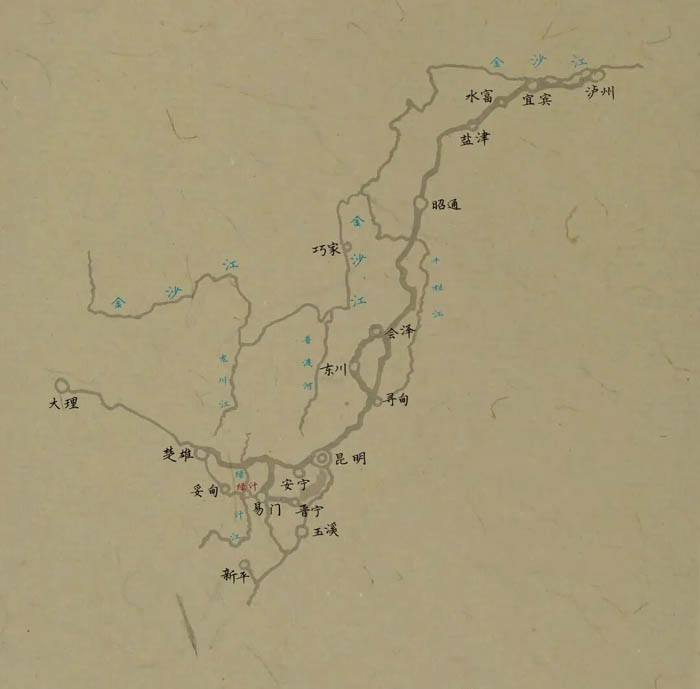 铜,六十余万斤的铜,从水流激荡、悬崖千仞的绿汁江畔爬上马背旋即开始了路途遥遥的远征。在没有现代运力的时代,我们很难想象如何完成如此巨大的搬运。然而,铜的解运毫无悬念的只能依靠人背马驮。以一匹马负载一百五十斤来算,解运六十余万斤铜约需马匹四千匹,于是,我们看到了另一幅图景:从绿汁江边的香树坡厂到起乍,到竹子哨,到亮山,到普子哨,到永靖哨,到大龙泉密林深处,一支庞大的马队风尘漫漫的行进着。然而,这仅仅是解运京铜漫长旅途中微不足道的一段路途,年轻的马锅头还将率领这支绵延数十里的马队,翻越易门与安宁交界处“三峰矗出,直插云霄”的庙儿山军哨口,经由八街,过晋城,渡滇池,抵昆明,即便如此,也还仅算是进入了通京铜运大道寻甸路的一个汇聚点!到达昆明这个汇聚点,或许还有另一条驿道可以让年轻的马锅头选择,《铜政便览》说:“香树坡厂,一站至法脿(双柏),一站至雨竜,半站至妥甸,一站至南安州城,一站至楚雄府城,六站至云南省城。”无论如何,到达昆明的易门铜必须等待,那些从滇西启程的铜正在马背上颠簸着一步一步朝昆明赶来,它们将在这里汇聚。属于本省局铸采买的将留下,那些从千里之外飘来的订单采买的铜将继续上路,譬如来自江苏、浙江、江西、湖南、湖北、福建、广东等。当然,最大的订单仍然来自遥远北方的紫禁城,乾隆五年后,从紫禁城中飘荡到云南的滇铜订单高达年解京铜六百余万斤!这意味着铜将继续赶路,但接下来的行程或许是年轻的马锅头再也无法想象和行走的了。